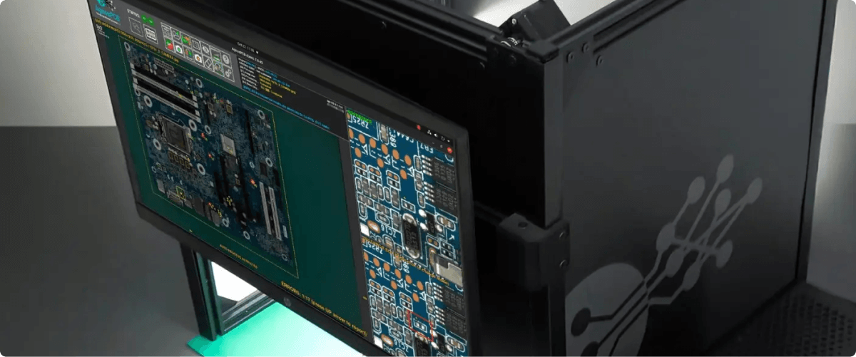 Il sistema, descritto da AgnosPCB come un “sistema di ispezione ottica automatizzato con un solo pulsante”, confronta la scheda di produzione con il riferimento, identificando le deviazioni tramite una maschera sovrapposta.