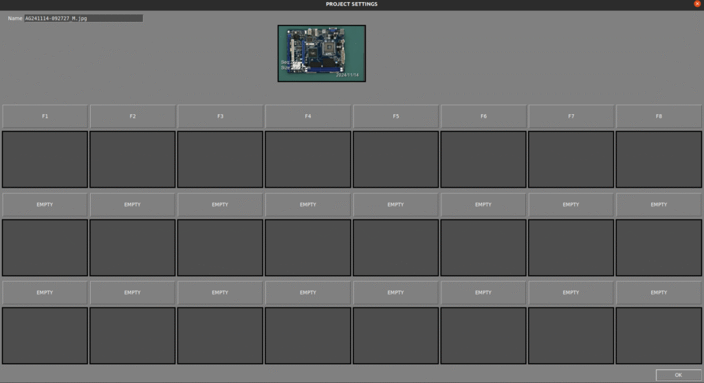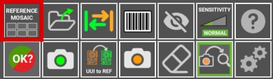 Il mosaico di riferimento viene utilizzato per memorizzare i RIFERIMENTI come file per trovarli e caricarli rapidamente. Il menu del mosaico appare automaticamente dopo aver scattato un RIFERIMENTO utilizzando il software con il pulsante “Scatta foto RIFERIMENTO” o caricandolo come file. Un RIFERIMENTO memorizzato nel mosaico può essere caricato rapidamente premendo un tasto funzione (F1-F10).