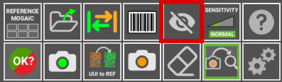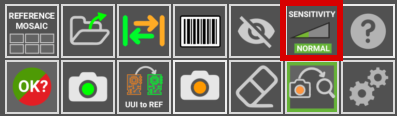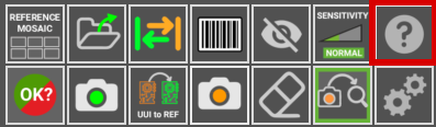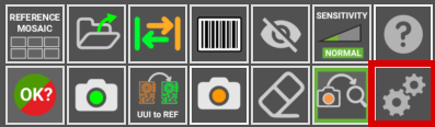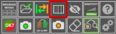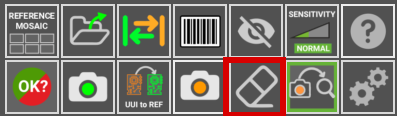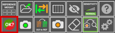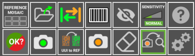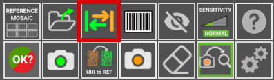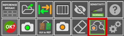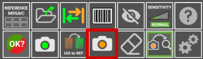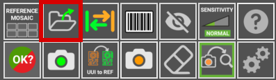 Utilizzare questa icona per caricare un’immagine precedentemente acquisita come RIFERIMENTO. Tutte le immagini di RIFERIMENTO si trovano all’interno della cartella APP/REFERENCE, in una cartella denominata in base all’ora di acquisizione.