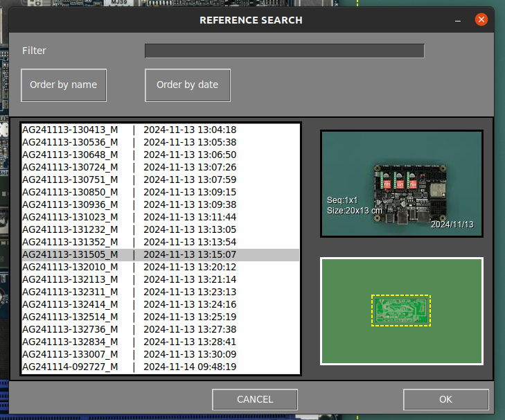 Questo pulsante apre una finestra con le utilità per generare un’immagine di RIFERIMENTO da un PCB o un pannello. Questa funzione può essere attivata premendo il tasto R della tastiera.