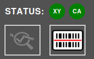 Questa area mostra lo stato della connessione con la piattaforma di ispezione e la telecamera. Se la connessione non riesce, le icone diventano rosse. Questa area contiene anche i seguenti pulsanti di azione: