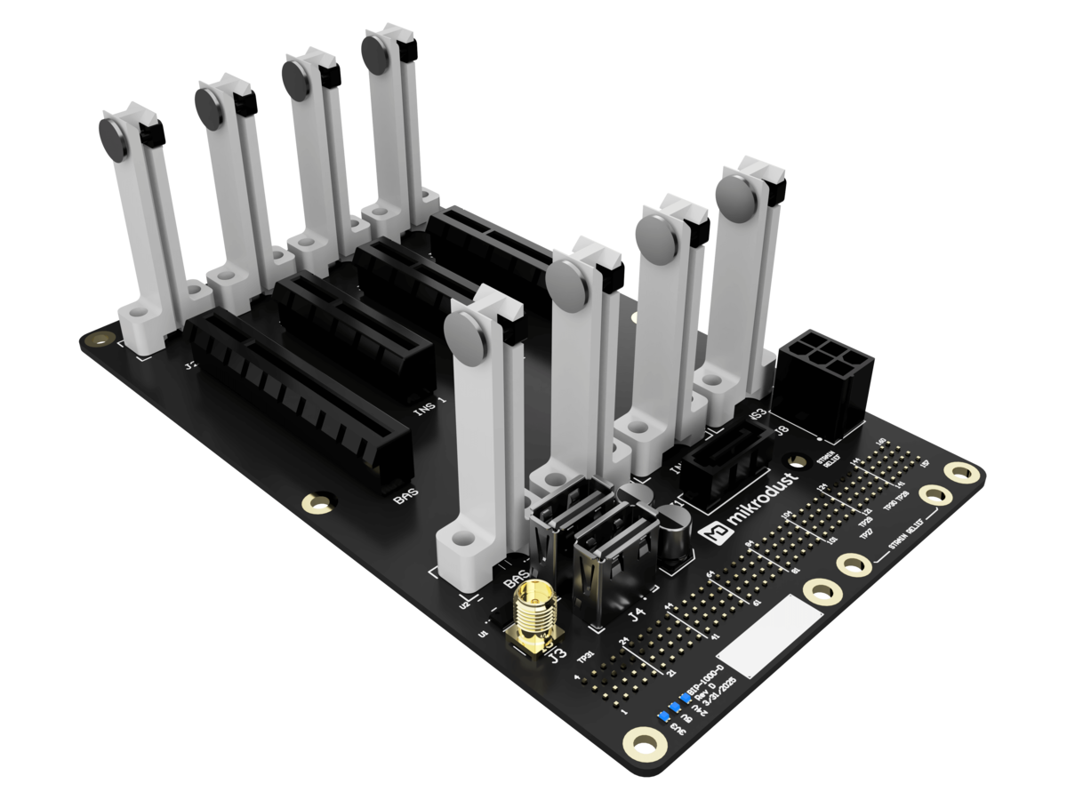 Questo Backplane x4, con uno strumento AtoMik® BAS, tre strumenti AtoMik® insieme alla porta USB 2.0 e alla connessione di alimentazione da un modulo di interfaccia AtoMik®, costituisce un sistema di test e misura completo, potente e compatto.